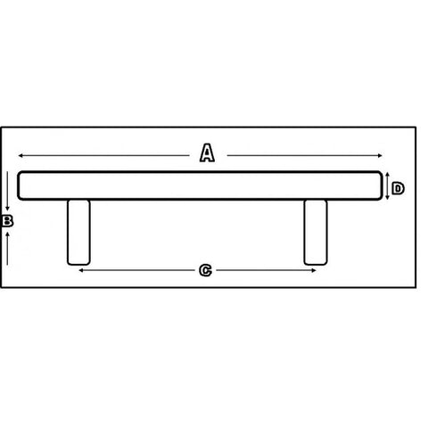 - A=14 inches B= 1-3/8 inches C= 10 inches D= 1/2 inches